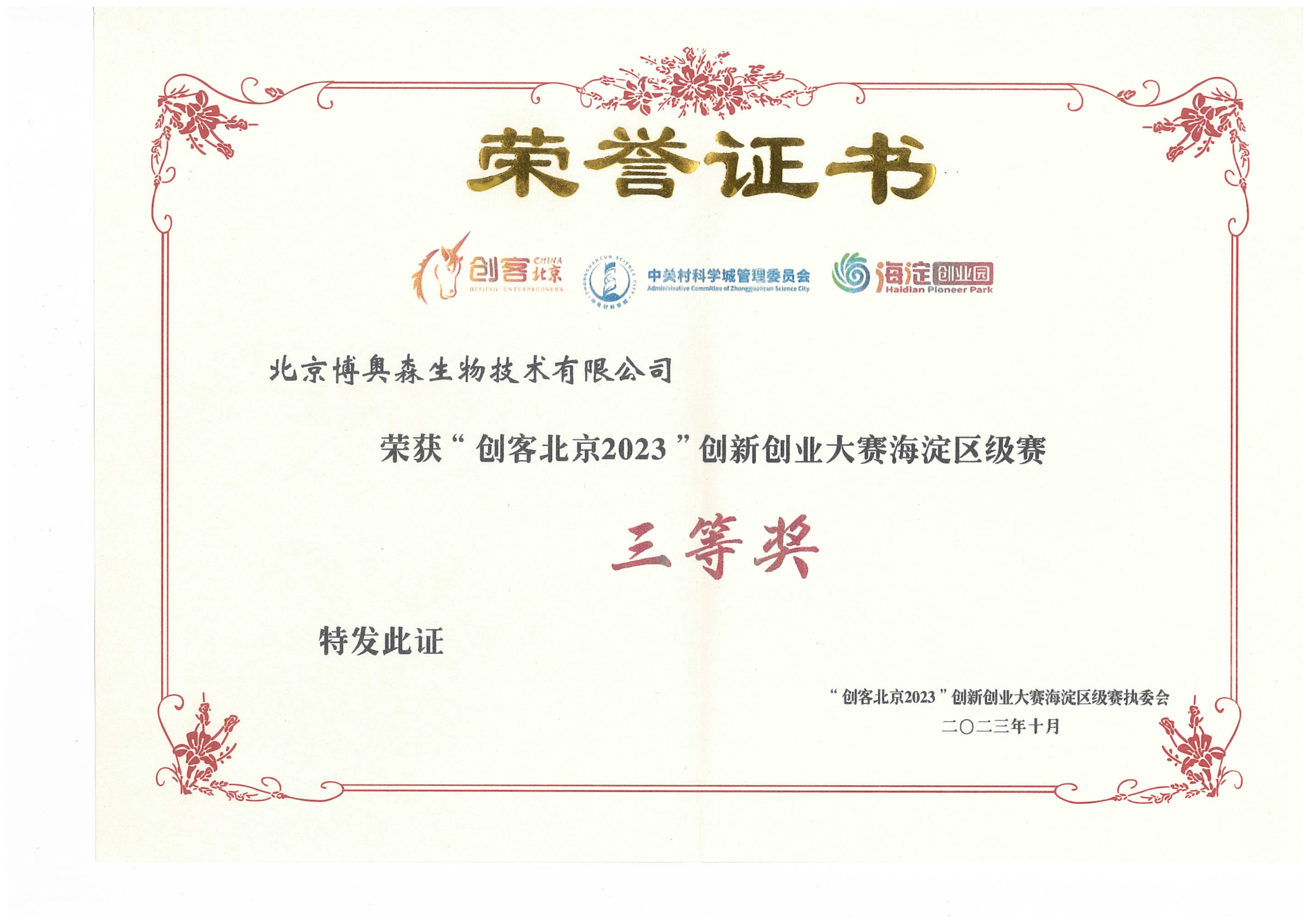 2023年-“创客北京2023”创新创业大赛海淀区级赛三等奖